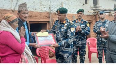 डोटी – विपद् जोखिम पूर्वतयारी अभ्यासका क्रममा ज्यान गुमाएका सशस्त्र प्रहरी जवान स्वर्गीय सुरज साउँदका आमाबुवालाई सशस्त्र प्रहरी बल नेपालले…