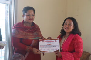 उहाँले महिलाका लागि थुप्रै कार्यक्रम नगरले आयोजना गरिरहेको छ । आगामी दिनमा पनि यस्ता कार्यक्रमलाई प्राथमिकतामा राखी महिलाहरुलाई आत्म निर्भर बनाउनमा नगरपालिका लागि परेको जानकारी दिनुभयो ।