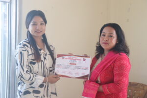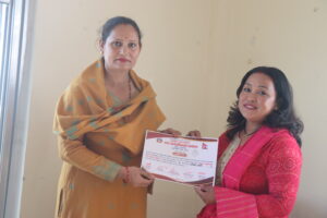 कार्यक्रममा तालिममा सहभागीहरुलाई प्रमाणपत्र प्रदान गरिएको थियो । कार्यक्रमलाई सहजीकरण नगरपालिकाका उद्यम विकास सहजकर्ता बिमला चौधरी र सुजाता तिमिल्सेनाले गर्नुभएको थियो । भने प्रशिक्षण पुजा रावलले गर्नुभएको थियो ।