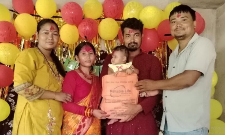 छोरीको पास्नी अवसरमा रिलायबल नेपाल लाइफको बीमा पोलिसी मल्लले दिए उपहार