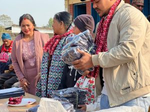 पुनर्वासमा मनकारी धर्मेन्द्र जेठाराद्वारा विद्यार्थीहरूलाई न्यानो लुगा वितरण