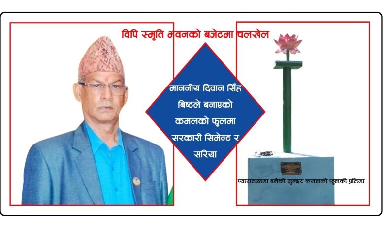 बीपी स्मृति भवन निर्माणका लागि छुट्याइएको सरकारी बजेटबाट खरिद गरिएको सरिया र सिमेन्ट पुनर्वास नगरपालिका-९ मा अवस्थित “प्याराताल” क्षेत्रमा कमलको प्रतिमा निर्माणमा सुदूरपश्चिम प्रदेशका विधायन समिति सभापति समेत रहेका माननीय दिवान सिंह बिष्टको व्यक्तिगत सहयोग देखाई सामग्री पठाएको तथ्य बाहिरिएको हो।